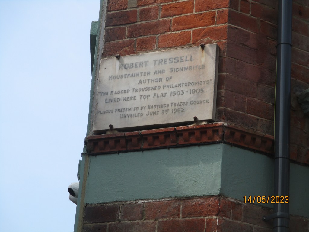 19 members enjoyed a very interesting walk around Robert Tressell’s Hastings led by Dr Trevor Hopper., author of ’Robert Tressell’s Hastings’. We visited places associated with Tressell (Robert Noonan in real life) including his former home in Milward Road and one of the places he worked while living in Hastings. Dr Hopper also pointed out places represented in ‘The Ragged Trousered Philanthropists’ including the Town Hall from whose balcony election results were announced and inside which the ’40 Thieves’ plotted their self-enrichment schemes. We also saw the Carlisle where Noonan attended Trades Council meetings and the former Cricketers pub on South Terrace both of which also appeared in the novel. If you want to find out more, visit the Robert Tressell Society website.
