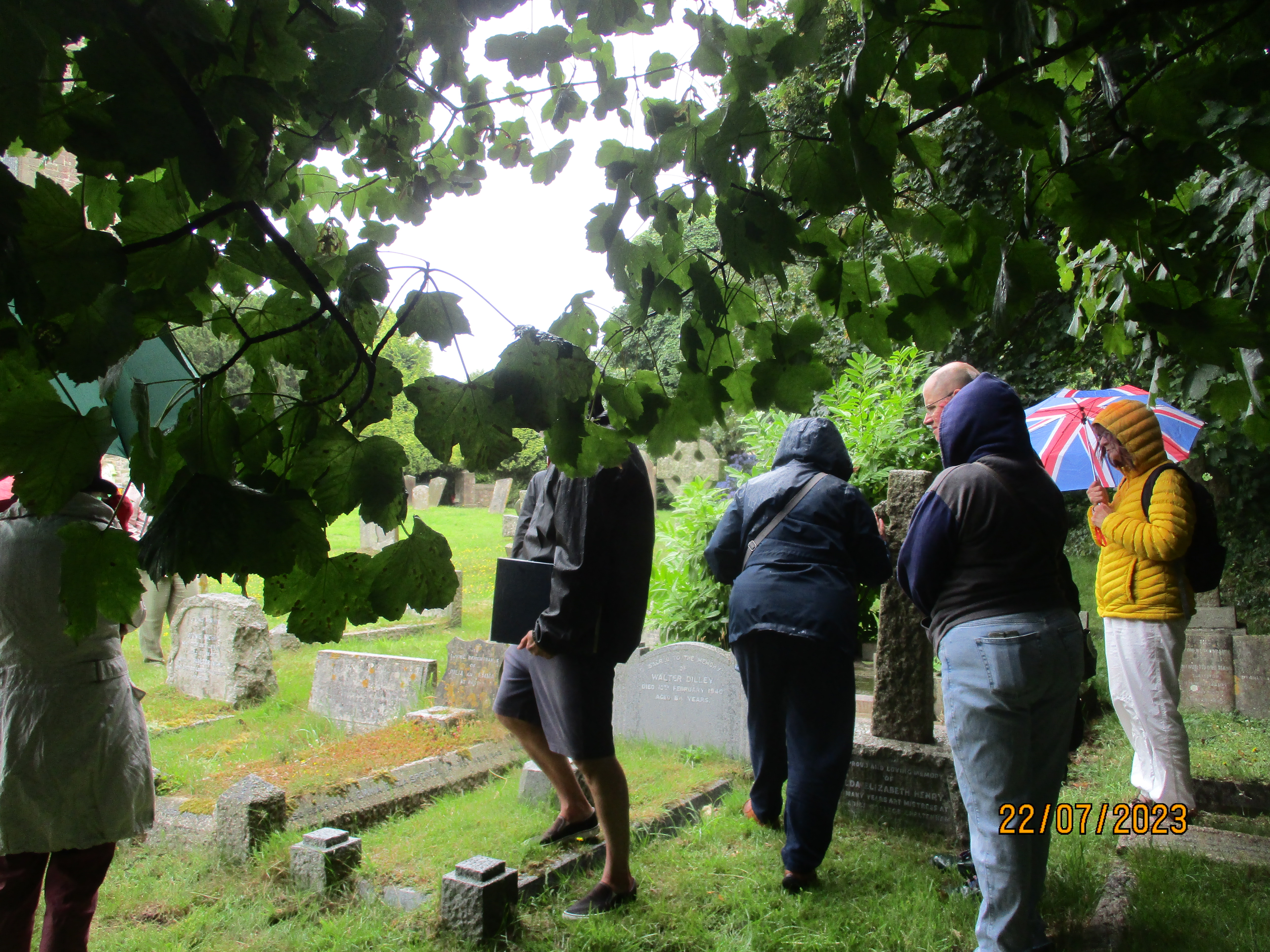 Despite the rain, a good number came along to Fairlight church yesterday for an interesting visit with Paul Draper from Fairlight History Society regaling us with information about some of the characters buried in the churchyard. It seems that many of those buried there have no apparent connection to Fairlight and nobody knows why they’re there. Some intrepid souls climbed the tower with Rev Sandi Wickens.